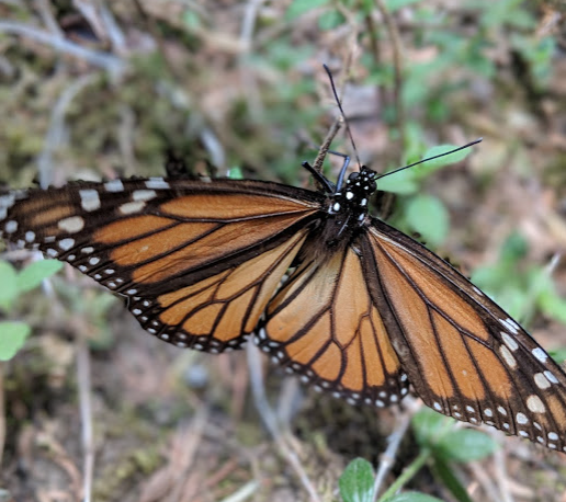 The day of our third and final Sanctuary visit was cool and calm. We arrived at Piedra Herrada in the late morning, and after a delicious lunch on site we saddled up on horses and headed up the mountain. We dismounted near the top and hiked another 300ft to find large clusters of Monarchs clinging to the branches of the trees. One tree was so filled with butterflies it seemed the addition of one more would bring the tree toppling down. We all stayed quiet and vigilantly observed the steady groupings. To our surprise there was a sudden flood of Monarchs cascading down and away from a clump midway up the heavily laden tree. After further observation we became aware of a brightly marked bird pouncing around the top portion of several clumps of Monarchs. We identified the bird as a Black Backed Oriole, and it was busy hunting our beloved Monarchs. We were elated to be witnessing this circle of life event that reinforced that the fight for one species is a fight for all species. Piedra Herrada gave us moments of reflection and reverence to soak in the pure magic of seeing millions of Monarchs gathered in one place.